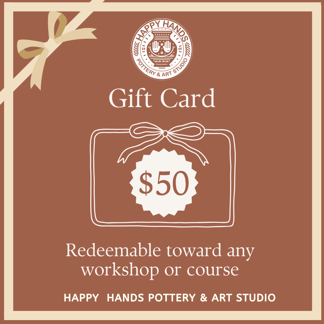 Looking for a meaningful and creative gift? The Happy Hands $50 Gift Card is the perfect way to share the joy of art and pottery.